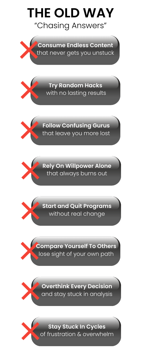 This simple system makes it possible for you to step into your next chapter with confidence and peace — without needing to: