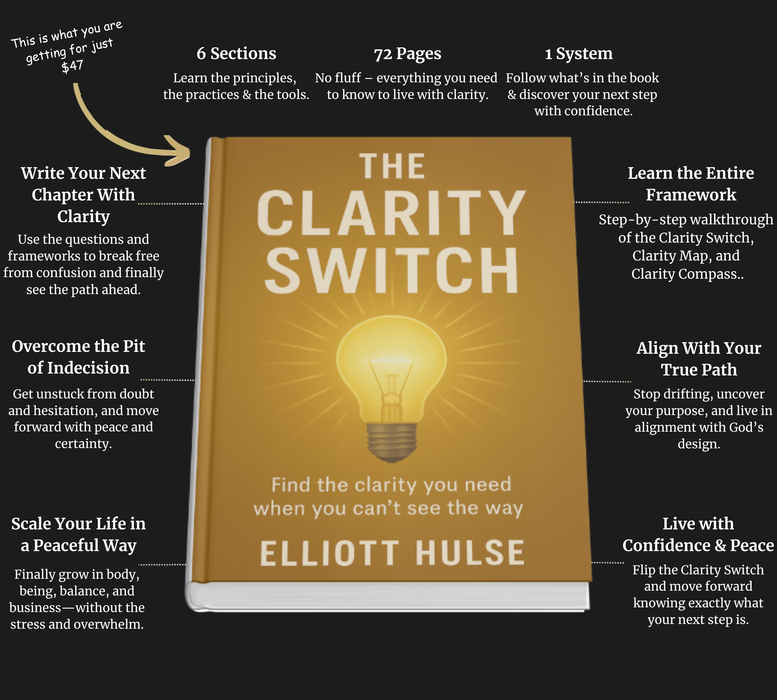 You’re getting Clarity Switch, a book that reveals the exact strategy I’ve used to help men break free from confusion and finally step into a clear, God-aligned direction for their lives.