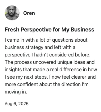 “I felt stuck under a glass ceiling in my business, unsure how to grow without losing my peace. The process helped me see that alignment and growth don’t have to be opposites—they can actually work together. I walked away energized, with a clear vision and direction for the next level of my business.”