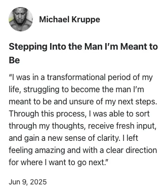This is for men who feel stuck, overwhelmed, or unclear about the path forward. Typically, these are men in their 30s to 50s—husbands, fathers, or career-driven men—who’ve achieved success on paper but quietly feel lost, unfulfilled, or unsure of their next move. If you’ve tried programs, routines, or self-help advice that never really “clicked,” this is for you.